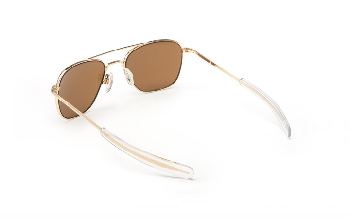 23k Gold Frame, Tan Lense, Bayonet Temple Originally built for the U.S. Military, our flagship Aviator Sunglasses surpass rigid mil-spec standards. Standard issue since 1982, these are battle tested and relevant to the most rigorous and demanding use. Worn by pilots, taste-makers, and those who demand the best.