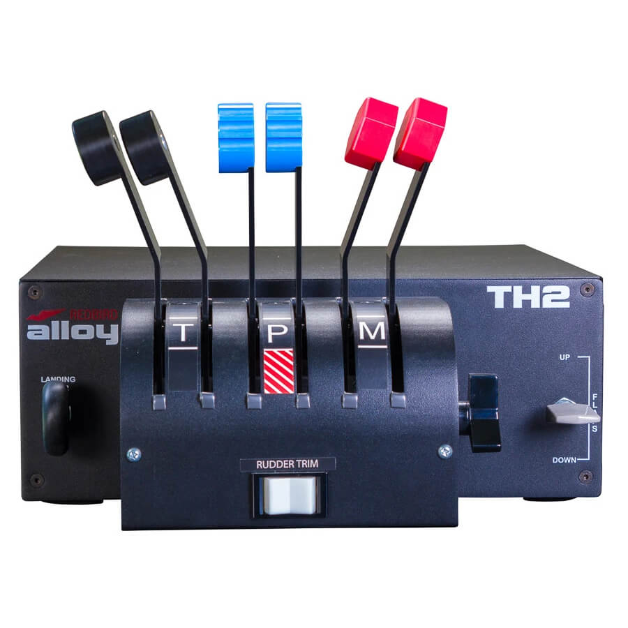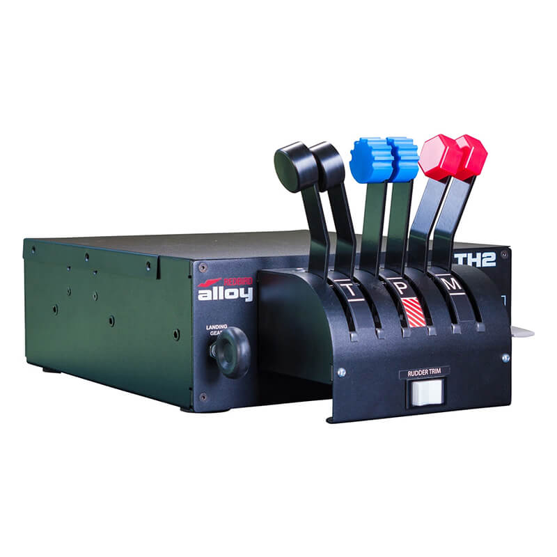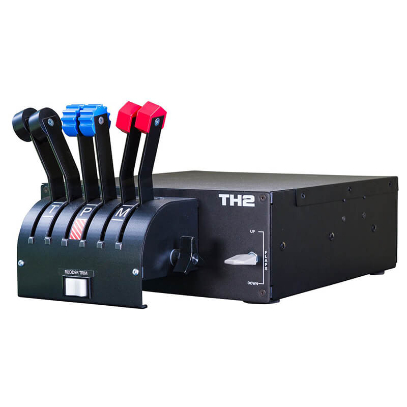 The Most Realistic Home Simulation Controls on the Market. Enhance your simulation setup with the TH2 multi-engine throttle quadrant. The lever style throttle, propeller, and mixture controls will allow you to realistically fly the most popular multi engine aircraft. The TH2 even comes with rudder trim for those pilots wishing to try single engine operations. The high-quality and durable components of the TH2 will ensure that even the longest haul flights can be flown with precision time and time again. If only we could guarantee the stamina of the sim pilot! USB connectivity ensures that the TH2 is compatible with most flight simulation software devices running Microsoft Flight Simulator, Lockheed Martin Prepar3d, and X-Plane. The optional adjustable mounting arms allow a firm fixture to your desktop, either mounted on top or underneath for maximum flexibility and ergonomics. |