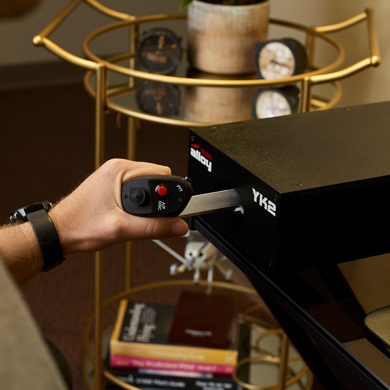 The Most Realistic Home Simulation Controls on the Market. Elevate your home flight simulator setup with the Alloy YK2, a professional-grade flight simulator yoke designed to simulate the functionality and performance you know and love from your Cirrus SR22 or SR20. The Alloy YK2 replicates the unique side stick of a Cirrus cockpit, giving you easy and familiar command of your simulated aircraft. It includes all the same buttons and switches you are accustomed to using as the pilot in command of a Cirrus airplane, including four-way trim, push-to-talk, and autopilot disconnect. |