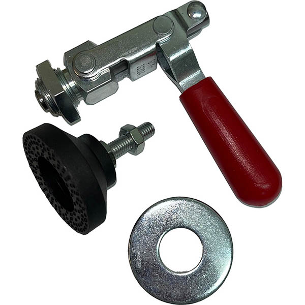 Toggle clamp brakes help to stabilize the steel frame of a Red Viper Airplane Positioner during mounting/demounting tire. An optional accessory depending on condition of surface. Note: Set of four brakes. NEWLY UPGRADED - WIDER HEAVY DUTY BASE! |