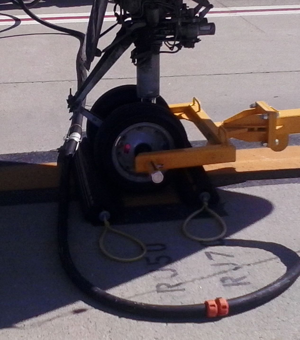 “Safe T Chock Line” pull rope is a patented product invented to prevent injuries while chocking wheels on aircraft, GSE, trucks and trailers. The Safe T Chock Line is a high visibility poly braided rope with a vinyl tube sleeve for a handle that will not freeze or cause rope burns. It is also sleeved to slide thru the center hole in the chock blocks. It can easily be modified to fit almost any type of chock block. This type of chock block pull rope is designed to reduce wrist, hand and finger injuries as well as making it safer to chock and un-chock aircraft and vehicles. Actual chocks not included. |
