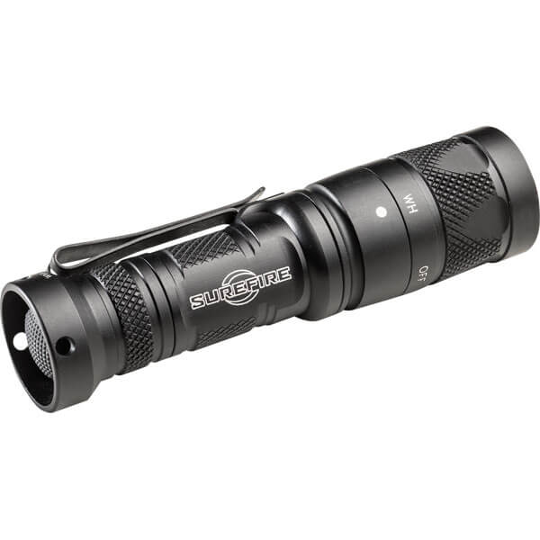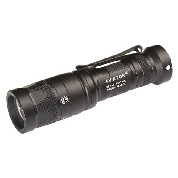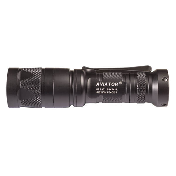 The ultra-compact, dual-output Aviator reinvents a classic SureFire design to provide a primary white LED and secondary colored LED in one sealed head, both focused into a useful beam with ample reach and surround light by a proprietary Total Internal Reflection (TIR) lens. Pull and twist Aviator’s self-locking selector ring to set it to white or colored light, no filter required-there’s even a system-disable setting to prevent accidental activation. The primary LED generates 250 lumens of smooth, intense white light on high and a user-friendly 5 lumens on low. Just press or click the shrouded tailcap switch to activate low output of the selected spectrum at momentary- or constant-on; immediately repeat to activate high output. There are four separate models to choose from, each sporting a different colored secondary LED to help preserve eye fatigue and help get the job done the following ways: