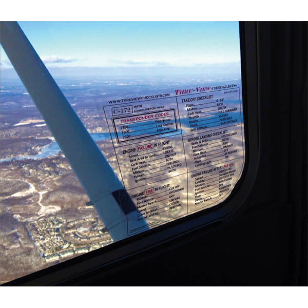 The Thru-View Emergency Checklist is a heads-up, emergency checklist made of high quality, transparent static cling vinyl that adheres to a window or clear sun visor without the use of adhesive for quick, convenient reference. |