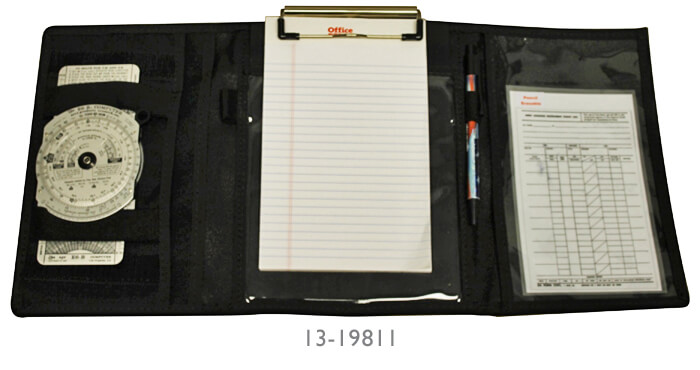 • An elastic band to hold a flight computer and a plastic clipboard in the center