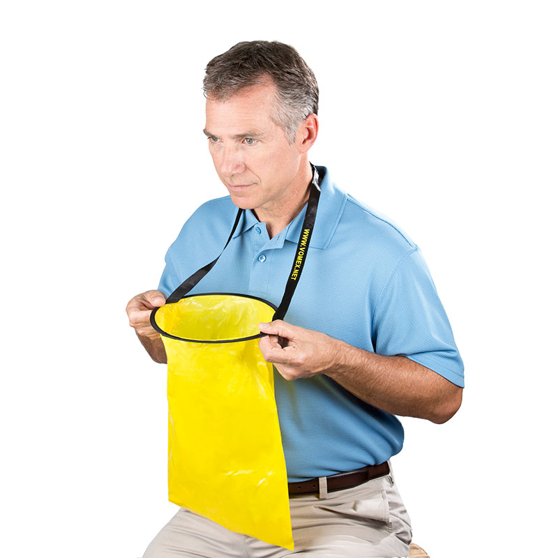VOMEX offers a product that makes a distasteful event easier to address. VOMEX emesis bags are simple and uniquely designed [US Patent #: D791,943 S]. With VOMEX you just POP, USE and DISPOSE! |