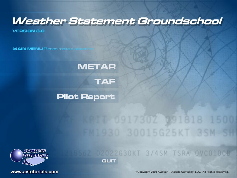 Weather Statement Groundschool is a downloadable course on METAR’s and TAF’s. Nearly 2 hours of stunning, interactive training is provided.