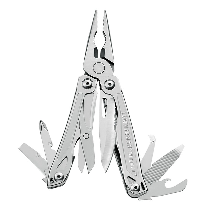 The Leatherman Wingman is just that: your go-to tool for projects around the house, on the job, or at the campsite. A great, lightweight, pocket-sized, stainless steel tool; the Wingman features an outside-accessible, one-hand opening blade and newly-designed spring-action jaws. With plenty of handy tools, and backed by a team of designers, assemblers, and manufacturing crew from Portland, Oregon, this is one amazing value. Covered by the Leatherman 25-year warranty.