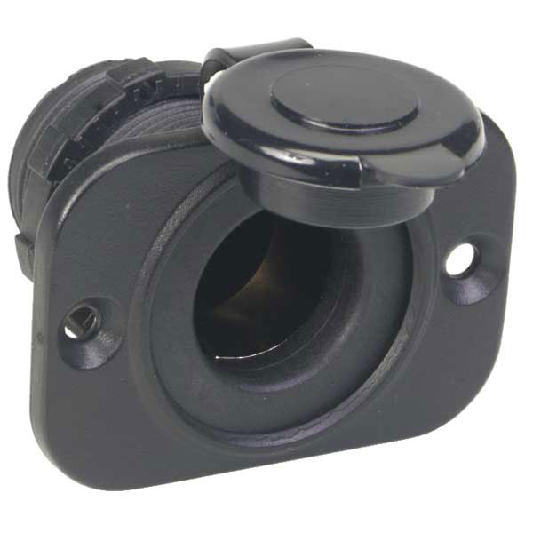 The Single 12V Flush-Mount Receptacle features an easy-to-install panel-mount assembly and 12V power outlet that works with any standard cigarette lighter plug. Includes weatherproof cap to protect the contacts from corrosion when not in use. |
