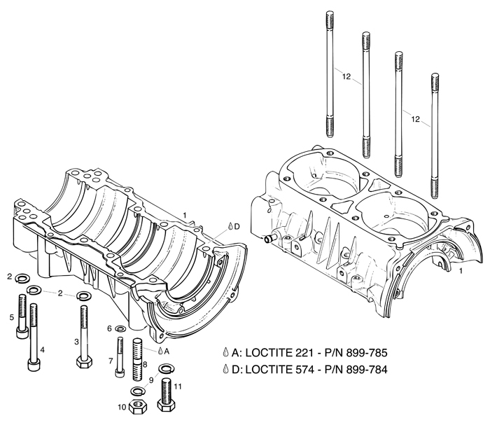 Rotax 447 UL Engine crankcase parts. Explanations of symbols and statements in part number charts: