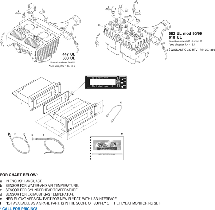 Rotax 447, 503, 582, 618 UL engine flydat unit. Explanations of symbols and statements in part number charts: