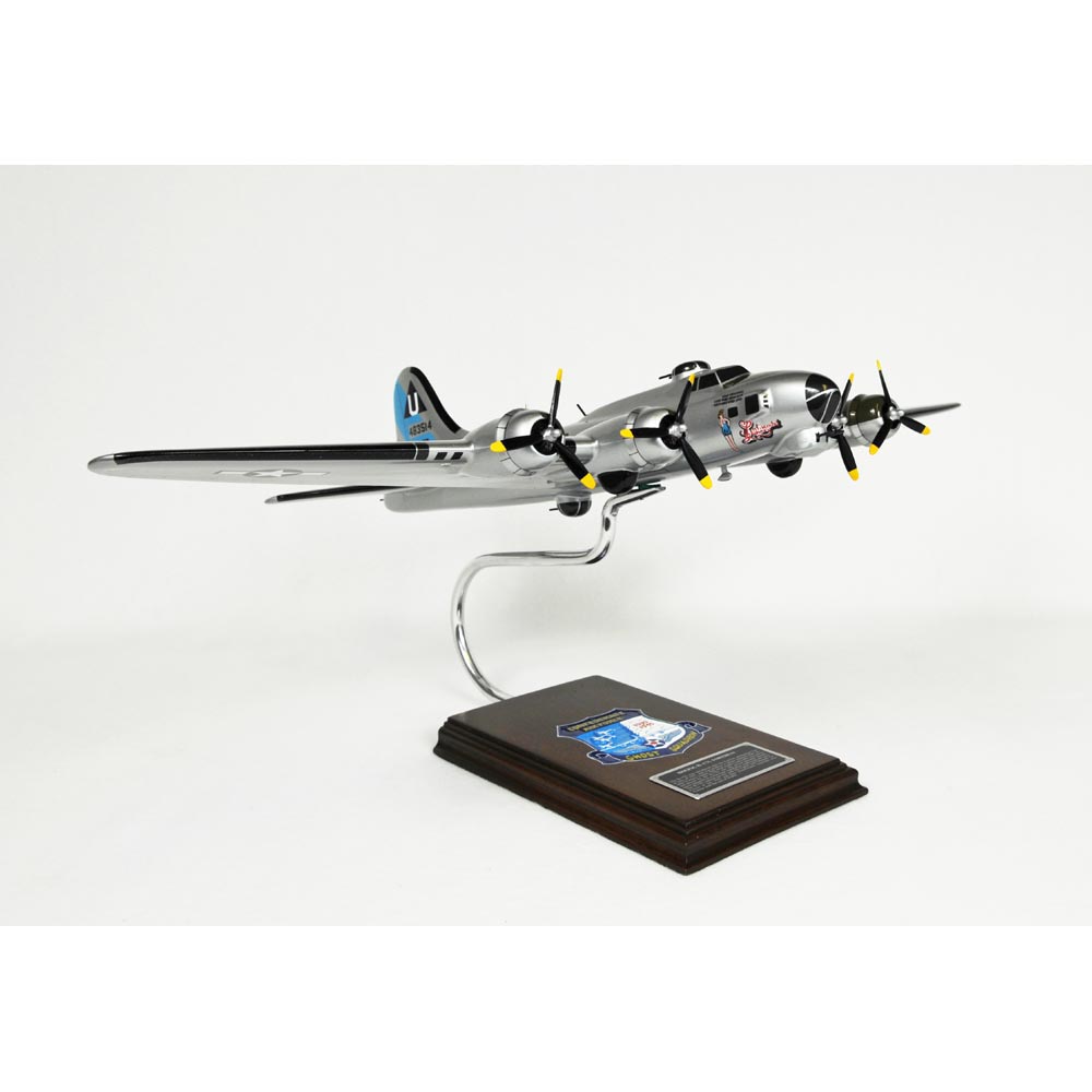 Immortalized in cinema and song, and personalized with flamboyant ""nose art"" by their crew of ten, this nearly indestructible aircraft earned its place in history as the most celebrated bomber of WWII. The B-17 flew in combat on every front world-wide. The B-17G was introduced onto the Fortress production line in July of 1943, and was destined to be produced in larger numbers than any other Fortress variant. The most readily-noticeable innovation introduced by the B-17G was the power-operated Bendix turret mounted in a chin-type installation underneath the nose. This turret was equipped with two 0.50-inch machine guns. The B-17G now had the defensive firepower of no less than thirteen 0.50-inch machine guns--two chin guns, two ""cheek"" guns, two guns in the dorsal turret, two guns in the ventral turret, two guns in the waist, two guns in the tail, and one gun in the roof of the radio operators position. The B-17G entered service with the Eighth and Fifteenth Air Forces in late 1943. When production finally terminated in 1945, a total of 4035 B-17Gs had been built by Boeing, 2395 by Douglas, and 2250 by Lockheed-Vega. The last Boeing-built B-17G was delivered on April 13, 1945. |