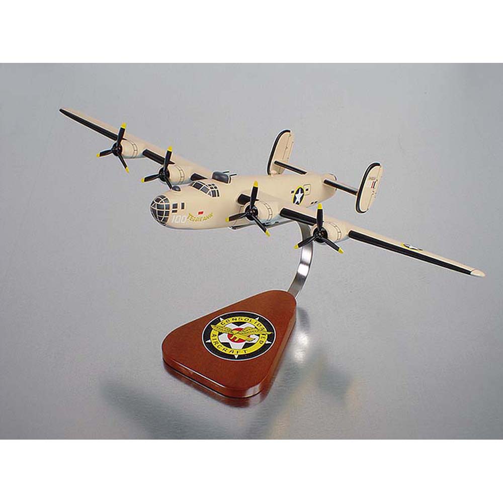 This is a 1/62 scale model handcrafted from mahogany and comes with a wooden base. The Liberator was operated by the 15th Air Force in Cyrenaica and flew on raid to the Ploesti oilfieds on August 1, 1943. The bombers were painted in desert pink. The B24D Liberator was the first liberator that was put into mass production by Consolidated. More than 2,700 B-24D was produced. The first production of B-24D was almost similar to B-24C and was delivered to the Army Air Corps. The B-24D’s long deep fuselage enabled the Army Forces to settle in to a continuous diversity of attacks. The B-24D served commendably not only as bombers but also as photo reconnaissance aircraft, anti submarine aircraft and as cargo planes too. In 1943, The B24D Liberator replaced the B-17 Flying Fortress as the heavy bomber in the South Pacific. The liberator was flown by the Army and Navy Aircrews. Five months after the production of the B-24D in San Diego, Consolidated began a new production of the B24D in Forth Worth. The Liberator attained recognition during the WWII as one of the Army Air Force’s most reliable long range bombers. |