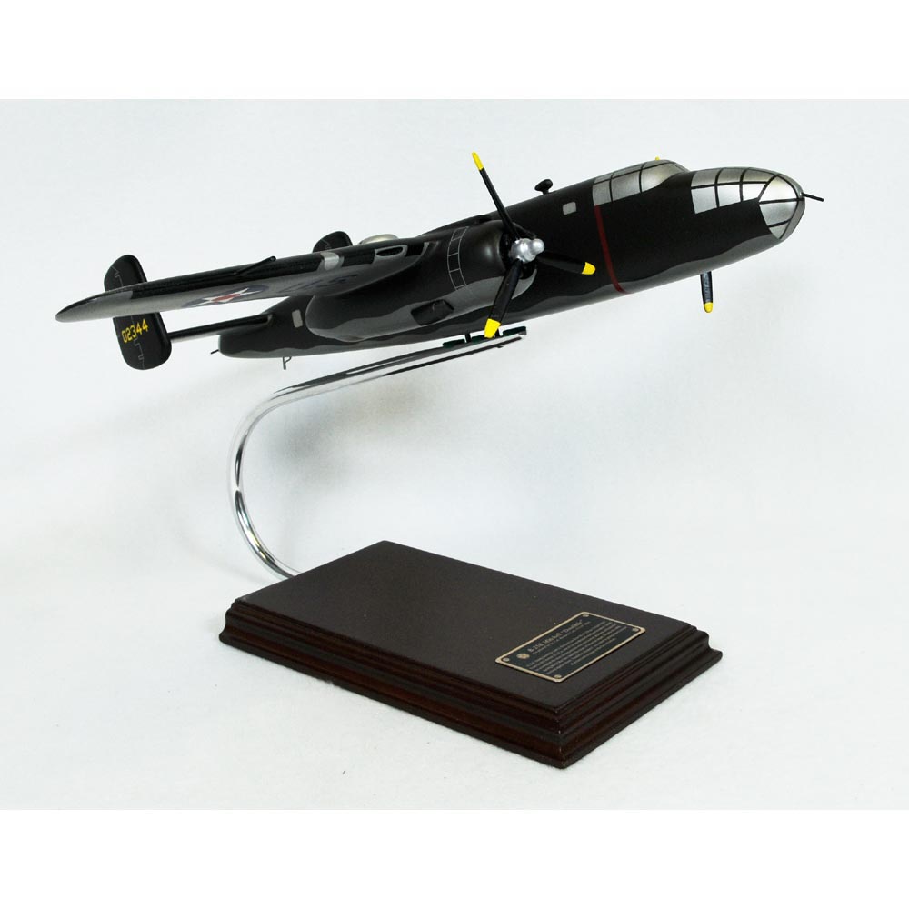 The North American B-25J Mitchell was an American twin-engined medium bomber developed by the North American Aviation. The aircraft was used with devastating effect against German and Japanese targets in every battle scenario of World War II. The B-25J Mitchell was named General Billy Mitchell, an American general known as one of the most famous pilots in American airpower history. He was called the Father of the U.S. Air Force. The B-25 Mitchell took its first flight on August 19, 1940. It is powered by two Wright R-2600-9 Cyclone engines which delivered an amount of 3,400 horsepower. The aircrafts highest speed is 355 mph. The original airplane had difficulties during bombing runs, so the dihedral in the outer wing panels was eliminated on the 10th B-25 version onwards. The B-25J has 4,318 units. It is considered to be the most widely produced version of the Mitchell. The B-25 saw many modifications during its operating service. The series ran from the B-25A to B-25J, each type seeing variations to increase its firepower. The first 25 were armed with a. 30-caliber Browning in the nose and one at each waist position. For security, the tail of the aircraft sported a .50-caliber Browning. An acrylic sheet nose and a turret gunner originated with the B-25B. The B-25G also had a retractable belly turret. |