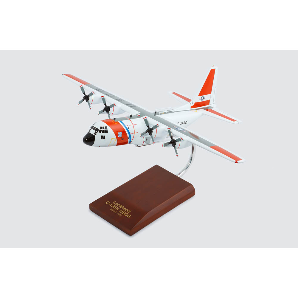 This high quality replica is handcrafted from mahogany and comes with a wooden base. Length is 14" and wingspan is 16". Scale is 1/100. The HC-130 Hercules is a long-range surveillance and transport, fixed-wing aircraft that is used to perform search and rescue operations, marine environmental protection, military readiness, enforcement of laws and treaties including illegal drug interdiction, and International Ice Patrol missions, as well as cargo and personnel transportation. The aircraft took its first flight on August 23, 1954. The HC-130 is an extended-range, combat rescue version of the C-130 transport aircraft. Its main mission is to provide air refueling for rescue helicopters. The aircraft can surpass 2,600 miles in low-altitude flying with mission strength of up to 14 hours. The aircraft is equipped with a ten tube flare launching system and scanner windows. Guidance aids such as GPS, Inertial Navigation System, and radar improves the HC-130s performance during long range maritime patrols. |