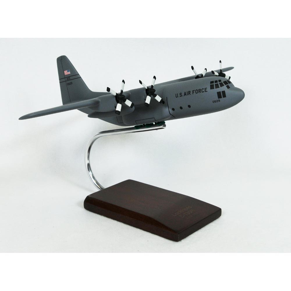 The C-130 Hercules, manufactured by Lockheed Aircraft, is the most versatile four-engine turboprop cargo aircraft and the main tactical airlifter for many military forces worldwide. The C-130 had its maiden flight on August 23, 1954. Over 40 models and variants of the Hercules serve with more than 50 nations. Its uses appear almost limitless: airlift and airdrop, electronic surveillance, search and rescue, space-capsule recovery, helicopter refueling, landing (with skis) on snow and ice, and aerial attack. It has even landed and taken off from a carrier deck without benefit of arresting gear or catapults. The Hercules is also committed for airdrops of troops or equipment and for LAPES (Low Altitude Parachute Extraction System) delivery of heavy cargoes. The C-130 Hercules has unsurpassed versatility, performance, and mission effectiveness. The C-130H, a C-130 Hercules variant, has updated Allison T56-A-15 turboprops, a redesigned outer wing, updated avionics and other minor improvements. The improved C-130H was introduced in 1974. The H model remains in widespread use with the U.S Air Force (USAF) and many foreign air forces. Initial deliveries began in 1964 (to the RNZAF), remaining in production until 1996. Max speed is increased by 21 %, cruise-speed, cruise-height and range is increased by as much as 40 % and it only takes 14 minutes to reach an altitude of 28000 feet after take-off. Later H models had a latest, fatigue-life-improved, center wing that was retro-fitted to many earlier H-models. The H-model has become the most produced of all C-130 models, with orders for 565 models as of the end of 1979. |