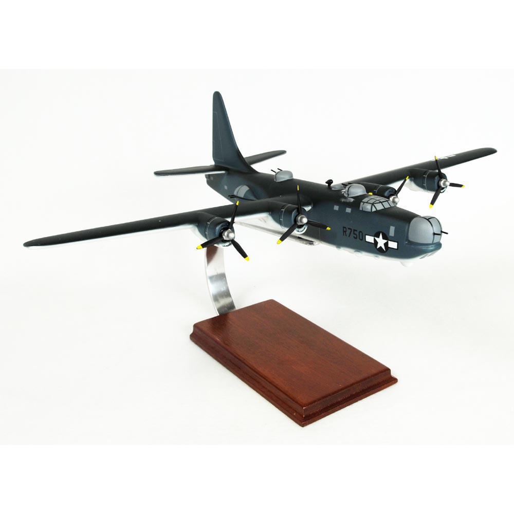 During World War II, the United States Navy (USN) acquired unmodified B-24 Liberator aircraft, used under the name PB4Y-1 Liberator, due to the need for longer ranges and increased use of land-based types, particularly for Arctic and other northern wintertime operations. While the type has performed very well for the USN as a maritime patrol plane, it was originally designed for the US Army Air Corps. In 1943, a decision was made to “navalize” the aircraft as a dedicated long-range patrol bomber. Three B-24s were taken off the assembly line and were reconfigured with longer fuselages, increased defensive armament, modified engine cowlings and a distinctive, single vertical tail. The resulting aircraft was the dedicated, long-range patrol bomber PB4Y-2 Privateer, designed to operate for long times over water in an anti-shipping or anti-submarine role. The Navy took 739 planes, though few reached front line service by Victory Over Japan Day. The PB4Y-2 was delivered to Navy squadrons beginning in May 1944 and taken into Pacific theater combat operations in January 1945, gradually replacing the Liberator. While serving in the Korean War, the Privateer earned the nickname “Lamp Lighter” for its role of dropping parachute flares in “Firefly” missions. Recipe for a Privateer: Take one B-24, replace the twin tails with a high single fin, extend the fuselage 7 ft, and add a crew of 11. Spice it with Martin dorsal turrets, Erco nose turrets and waist blisters. |