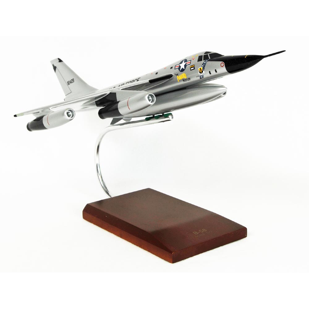 The Convair B-58 Hustler was the first operational jet bomber capable of Mach 2 supersonic flight and was developed for the United States Air Force Strategic Air Command in the late 1950s. The B-58 program started in February 1949. The B-58 design was the first ""true"" USAF supersonic bomber program. Its design was based on a delta wing with a leading-edge sweep of 60 degrees with four General Electric J79-GE-1 turbojet loading. It has a crew of three, the pilot, bombardier, navigator and defensive systems operator. The B-58 carries a single nuclear weapon in a streamlined MB-1C pod under the fuselage. The B-58 has a crew of three and has a maximum speed of Mach 2.1 The B-58 is extremely expensive and was reported that each B-58As costs much more than its weight in gold. It is a complex aircraft requiring considerable maintenance, requiring specialized equipment. On January 16, 1970, the last B-58s in operational service retired and was replaced by the FB-111A. A total of 116 B-58s were produced; 30 trial aircraft and 86 production B-58A models. A number of B-58s were used for special trials of various kinds and several variants such as the B-58B and B-58C were proposed by Convair, but were never built. |
