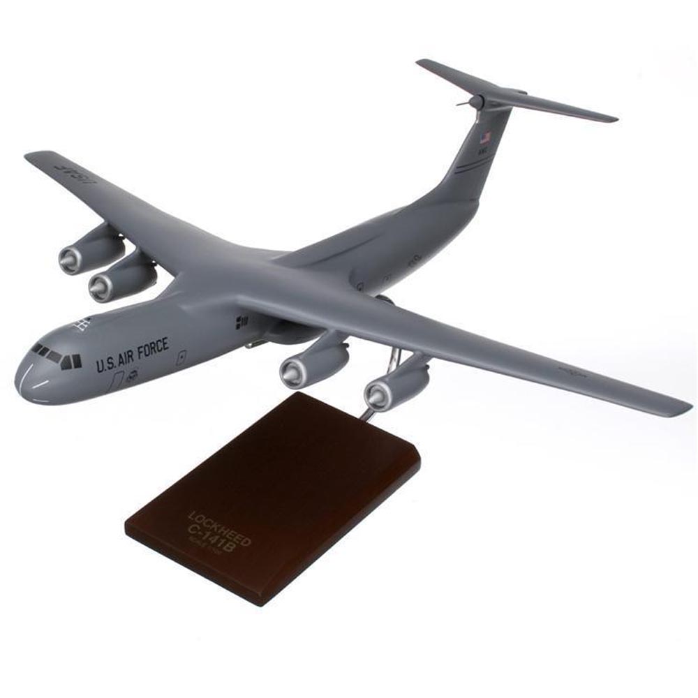The Lockheed C-141B Starlifter was a military strategic air lifter in service with the United States Air Force. The aircraft was created to replace slow piston-engined cargo planes. The C-141B Starlifter is the workhorse of the Air Mobility Command. The aircraft fulfills the vast spectrum of airlift requirements through its ability to airlift combat forces over long distances and deliver those forces and their equipment either by air, land or airdrop. The first C-141B was received by the Air Force in December 1979. Conversion of 270 C-141s from A to B models was completed in 1982. C-141 modifications aim to preserve the remaining force by reliability and maintainability improvements and capability improvements necessary for effective use through 2006. The C-141B is a stretched C-141A with in-flight refueling capability. The stretching of the Starlifter consisted of lengthening the planes 23 feet 4 inches (7.11 meters) and allowing the carriage of 103 litters for wounded, 13 standard pallets, 205 troops, 168 paratroopers, or an equivalent increase in other loads. The lengthening of the aircraft had the same overall effect as increasing the number of aircraft by 30 percent. |
