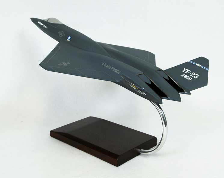 The Northrop/McDonnell Douglas YF-23 was a prototype fighter aircraft designed for the United States Air Force. It was entered in the Advanced Tactical Fighter (ATF) program in the early 1980s, but lost out to the Lockheed YF-22, which entered production as the F-22 Raptor. Two YF-23 prototypes were designed and built by Northrop and McDonnell Douglas as part of the demonstration and evaluation phase of the ATF selection program, which concluded in 1990. One prototype was powered by twin Pratt and Whitney YF119 turbofan engines, while the other was installed with two General Electric YF120 turbofan engines. The YF-23 employed stealth characteristics and was capable of supersonic cruise flight without afterburner. The aircraft achieved a speed of Mach 1.8 during the program. There was no official USAF nickname for the YF-23A, thus the Northrop YF-23A team personnel chose the name “Black Widow II” to commemorate the Northrop P-61 Black Widow, the first American aircraft specifically designed as a night fighter. In April 1991, the Air Force selected Lockheeds YF-22 design for full-scale development. According to the USAF, factors in the selection for production of the F-22 were better design for maintainability, greater potential for future development, and slightly lower cost. Supporters of the YF-23 believe that the YF-23 should have won the ATF competition due to its agility, stealth and greater fuel capacity. |