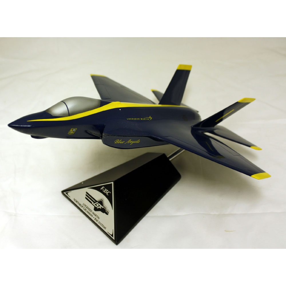 The F-35 is descended from the X-35, the product of the Joint Strike Fighter (JSF) program. JSF development is being principally funded by the United States, with the United Kingdom and other partner governments providing additional funding. The partner nations are either NATO members or close U.S. allies. It is being designed and built by an aerospace industry team led by Lockheed Martin. The F-35 took its first flight on 15 December 2006. This specific model is painted in the Blue Angels paint scheme. The United States Navys Navy Flight Demonstration Squadron, popularly known as the Blue Angels, was formed in 1946 and is currently the oldest formal flying aerobatic team. Since their inception, the ""Blues"" have flown a variety of different aircraft types for more than 427 million spectators worldwide. |