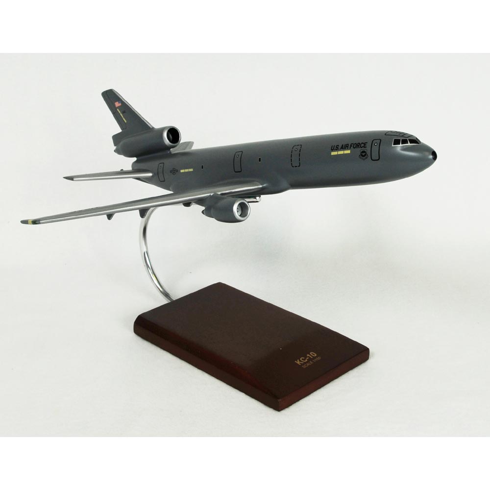 The KC-10A Extender is an air mobility command advanced tanker and cargo aircraft designed to provide increased global mobility for US armed forces. Its primary mission is aerial refueling but it is capable of simultaneously carrying fighter support personnel and equipment on overseas deployments. It can also transport litter and ambulatory patients using patient support pallets during aeromedical evacuations. The KC-10A was the second consecutive McDonnell Douglas transport aircraft to be selected by the US Air Force following the C-9 Nightingale. The KC-10A was derived from the civilian DC-10 airliner and entered service in 1981. Although it retains 88 percent of the DC-10, it has additional systems and equipment necessary for its Air Force mission. These include military avionics, seated aerial refueling operator station, and aerial refueling receptacle and satellite communications. It also has three more large fuel tanks. Using either an advanced aerial refueling boom, or a hose and drogue centerline refueling system, the KC-10A can refuel a wide variety of US and allied military aircraft within the same mission. The aircraft is equipped with lighting for night operations. During Operations Desert Shield and Desert Storm in 1991, the KC-10A provided in-flight refueling to aircraft from the US armed forces and other coalition forces. In-flight refueling was vital to rapid airlift of materiel and forces in the early stages of Desert Shield. Furthermore, the KC-10A, along with the KC-135, transported tons of cargo and thousands of troops in support of the Persian Gulf buildup. The KC-10A and the KC-135 conducted approximately 51,700 separate refueling operations and delivered 475 million liters of fuel without missing a single schedule. |