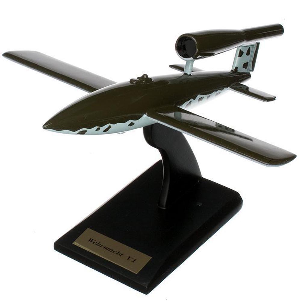 The V-1 is the first guided missile developed by the German Luftwaffe during World War II and it was manufactured by Fieseler. The V-1 was designed by Robert Lussar of Fieseler company and Fritz Gosslau from the Argus engine works, with a fuselage constructed primarily of welded sheet steel and wings. The V-1s maiden flight was during late 1941 or early 1942 at Peenemunde. The conventional unpiloted V1 launch sites could theoretically launch at about 15 bombs per day though it was never consistently achieved, so the record would be 18 in one day. The earliest experimental versions of the V-1 were air-launched. Most operational V-1s were launched from static sites on land and from July 1944 to January 1945, Luftwaffe launched approximately 1,176 from modified Heinkel He 111 H-22s flying with the Luftwaffes 3rd Bomber Wing or Kampfgeschwader 3 flying over the North Sea. Later in the war, several air-launched piloted V-1s were built but never used in combat. There were almost 30,000 V-1s made and approximately 10,000 were fired at England and 2419 have reached London which killed 6,184 people and injured 17,981. After World War II, V-1s were experimented by the armed forces of France, the Soviet Union and the United States. |