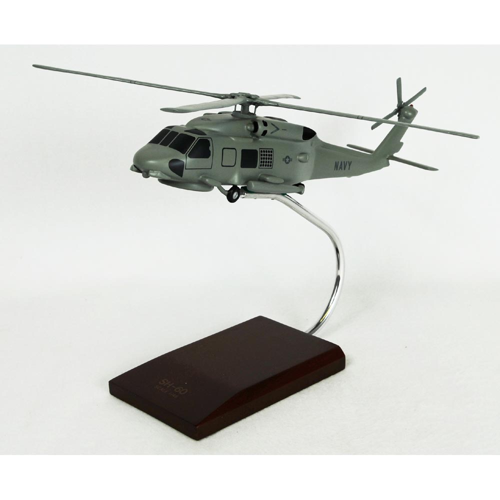 The Sikorsky SH-60/MH-60 Seahawk (or Sea Hawk) is a twin turbo shaft engine, multi-mission United States Navy helicopter based on the airframe of the United States Army/Air Force UH-60 Black Hawk. The SH-60 Seahawk is still being operated by the U.S. Navy. The SH-60B variant of the Seahawk, a twin-engine helicopter, was the primary anti-submarine platform used by the U.S. Navy. SH-60B was also used for search and rescue, drug interdiction, anti-ship warfare, cargo lift, and special operations. The –B version of the Seahawk first flew on February 11, 1983. The SH-60B, also a Light Airborne Multi-Purpose System (LAMPS Mk III), has a 20deg tractor-type canted tail rotor, a controllable stabilator, conventional fixed landing gear, emergency flotation, an external cargo hook, a rescue hoist, and bomb racks for carrying and launching external stores. In addition, it is equipped with a flight-rated auxiliary power unit, a sonobuoy-launch system, an anti-ice system, a fire-extinguishing system, an environmental control system, an automatic flight control system (AFCS), a single-point pressure refueling system, a helicopter in-flight refueling (HIFR) system, and the necessary avionics and instrumentation for instrument flight and mission accomplishment. The helicopter design is compatible with ships equipped with a recovery, assist, securing and traversing (RAST) system, and the main rotor blades and tail pylon can be folded for storage. In addition, the helicopter can operate on non-RAST equipped combatants and a variety of other naval ships. A total of 260 –B version were built. |