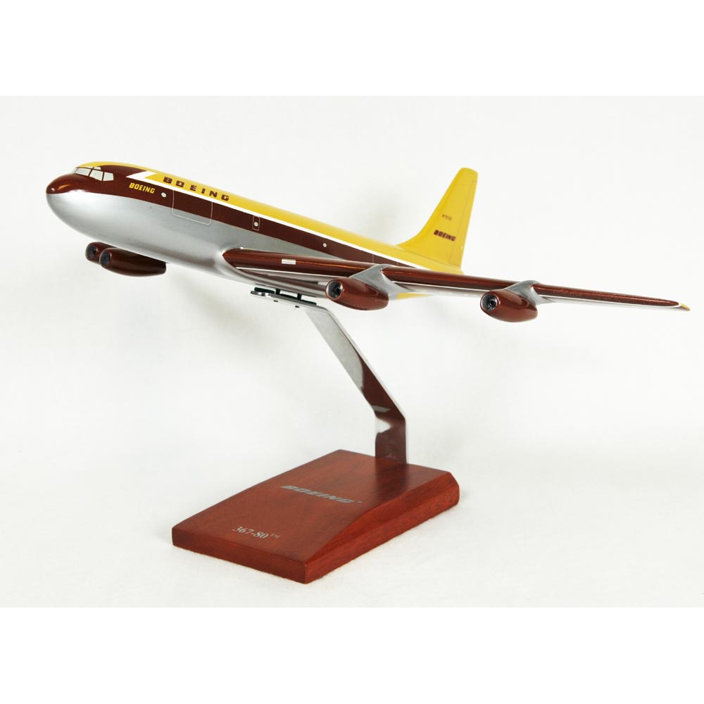 The Boeing 367-80, or ""Dash 80"" as it was called within Boeing, was a concept jet transport built to demonstrate that high speed jet transport was no longer the sole preserve of military aircraft. Boeing 367-80 was considered to be the prototype for both the Boeing 707 airliner and the C-135 series aircraft (including the best known variant, the KC-135 air tanker used by the United States Air Force), the Boeing 367-80 was built in less than two years from project launch in 1952 to rollout on May 14, 1954 for a cost of US$16 million. This was at the time an enormous risk for the Boeing Company, since they had no committed customers for the project. By early 1952 the designs were complete, and on April 1952, the Boeing board approved the program to build the jet. Construction of the Boeing 367-80 took place at Boeings Renton, Washington plant, but as a prototype there was no production line and most of the parts were custom built. The planes interior was not fitted with an airline cabin; rather it consisted of a basic plywood lining that was used to house the test instrumentation required for the flight test program. In addition to the flight testing program, Boeing also used the Boeing 367-80 to provide demonstration flights to airline executives and other key industry figures. |