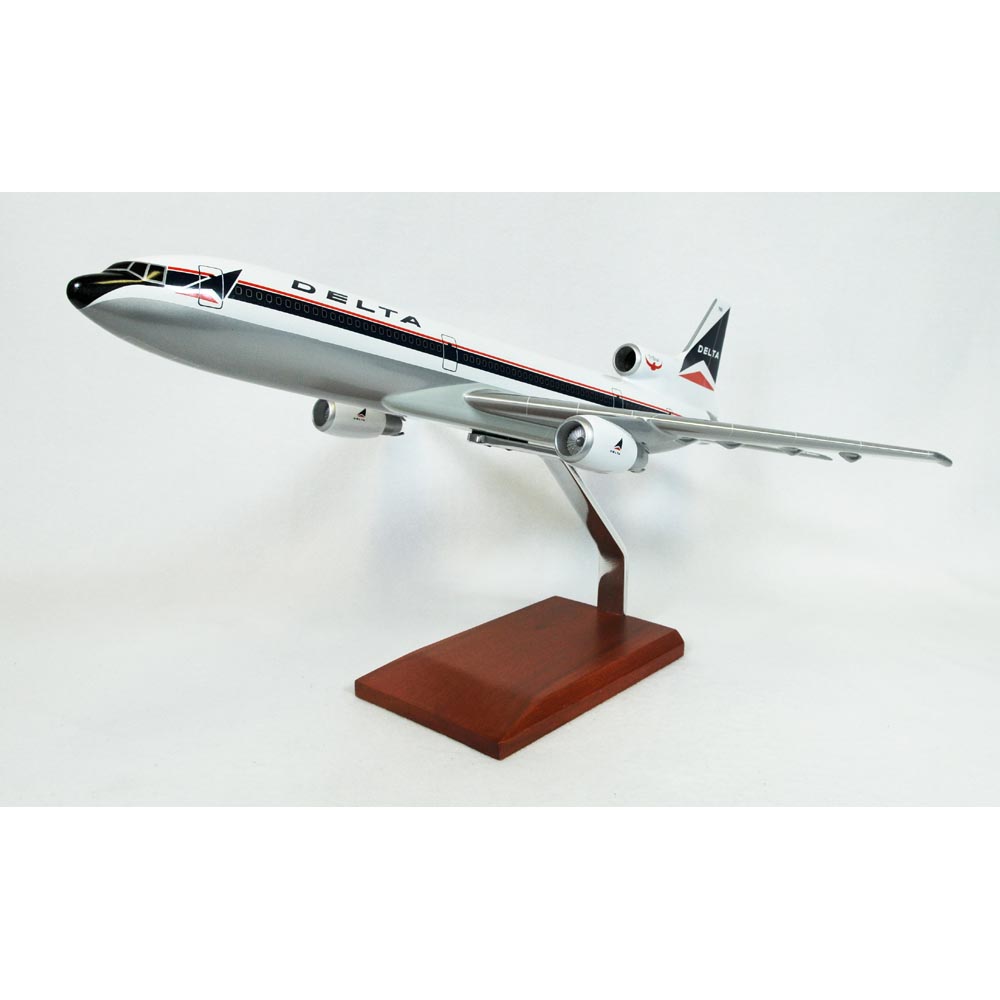 This high quality replica is handcrafted from mahogany and comes with a wooden base. Length is 21-1/2" and wingspan is 18-1/2". Scale is 1/100. The Lockheed L-1011 TriStar is a three engine jet airliner. The L-1011 TriStar was the last Lockheed airliner to be developed and was launched in March 1968 in response to an American Airlines requirement for a large capacity medium range airliner. The L-1011-1 was the first production model of the L-1011 which entered service with Eastern Airlines and TWA in April 1972. It was designed for short and medium-range flights and was purchased by Air Canada, ANA, Cathay Pacific, Eastern and other operators with regional trunk routes requiring a wide-body aircraft. Pacific Southwest Airlines purchased two L-1011 models with lower deck seating. This variant was also the only wide-body ever to have the option for a full-height built-in airstair incorporated into the design, although it remained an option on other variants. In 1983, production of L-1011-1 ceased when 250 had been built. In 1986, the prototype was sold to be broken up for spares. The L-1011-1 TriStar has a cockpit crew for three and has a seating capacity of 253 in a 3-class. It has a maximum speed of .95 Mach and a range of 4,610 mi. There are approximately 156 TriStars which remained in service in 1998, with 122 standard fuselage models. In 2000, the number went down to about 137, with 109 standard fuselage models. By the end of 2002, it dropped further to 51 active TriStars, with 23 standard fuselage ones. Delta retired its TriStar fleet in 2001, replacing them with the Boeing 767-400ER. The airplane was also used in the television series Lost, featuring a dismantled L-1011 formerly belonging to Eastern Airlines. |
