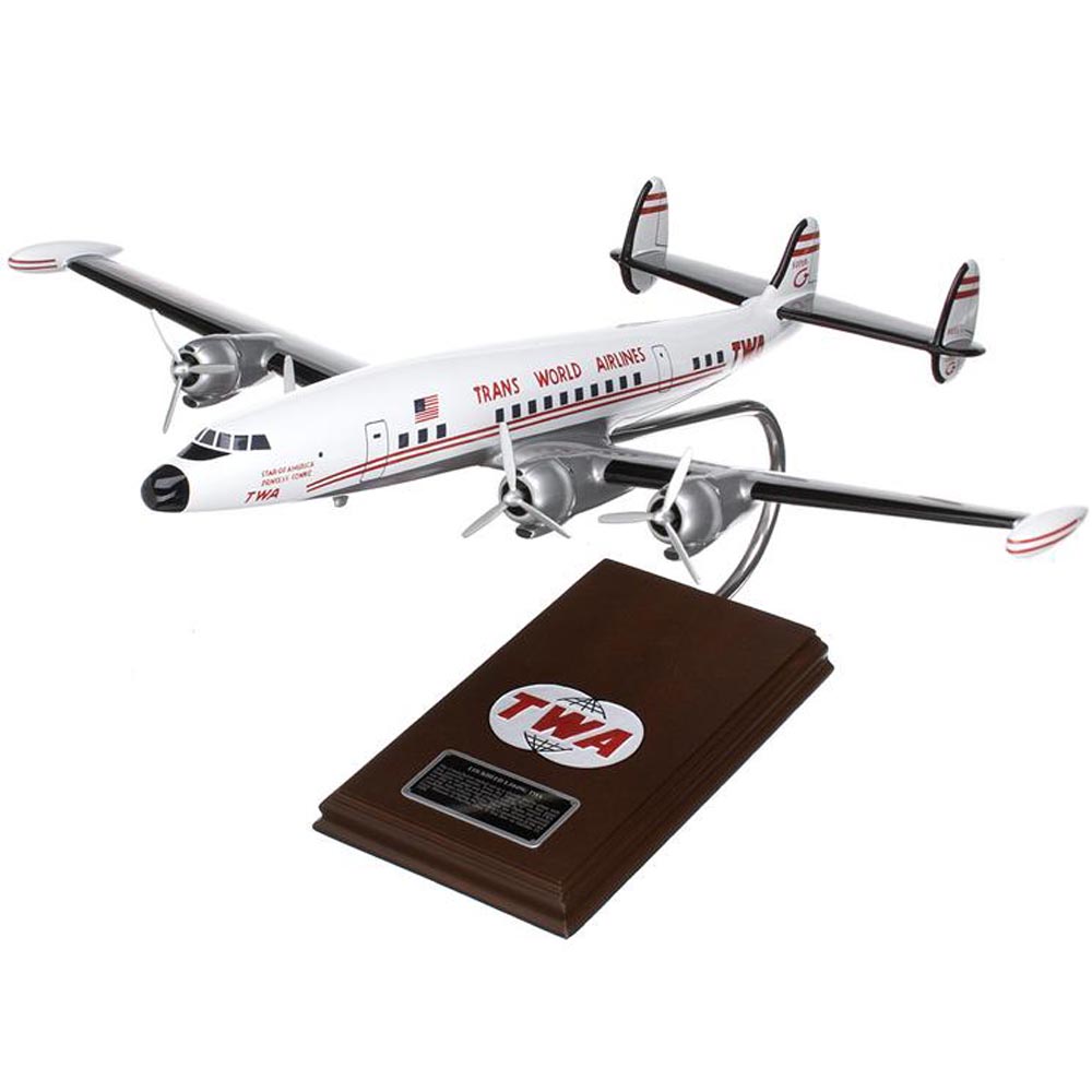 On April 7, 1967, Trans World Airlines (TWA) became one of the worlds first all-jet airlines with the retirement of their last Lockheed L-1049G Super Constellation and L-1649 Starliner aircraft. Many people consider the L-1049 Super Constellation to be the loveliest commercial aircraft ever built, which is why they often affectionately call it the ""Super Connie""./P> The L-1049G Super Constellation took off from Hamburg, Germany, to New York, USA, with a stop in Dusseldorf. The flight lasted 17 hours. In those days, flights across the Atlantic heading for America could be accomplished only with an intermediate stop. Flights to Germany were usually non-stop, due to the tail-wind. This marked the beginning of a new era. It wasnt until the Super Constellation that the plane became a means of mass transportation that allowed people to travel quickly and comfortably to cities around the world. The L-1049-G Super Constellation has 5 flight crews. The L-1049-Gs capacity is typically 62-95 passengers, up to 109 could be seated. The L-1049-G Super Constellation has a maximum speed of 380 mph and range of 5,400 mi. The L-1049G is distinguished by round windows and the ability to carry wingtip fuel tanks. The L-1049G Super Constellation had another distinguishing feature: It was the first commercial aircraft to have a pressurised cabin. |