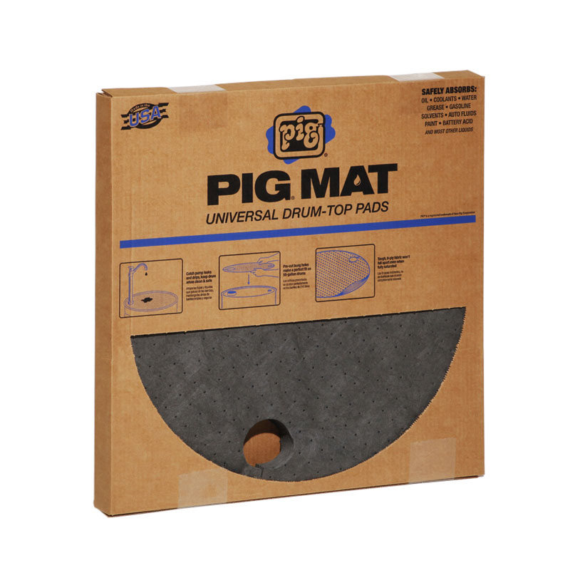 Eliminate messy drum storage areas without touching a mop or rag! Precut to fit on 55-gallon drums, PIGŪ Drum-Top Pads quickly absorb drips or overfills to help keep your shop clean and safe, so you can focus on repairing vehicles.