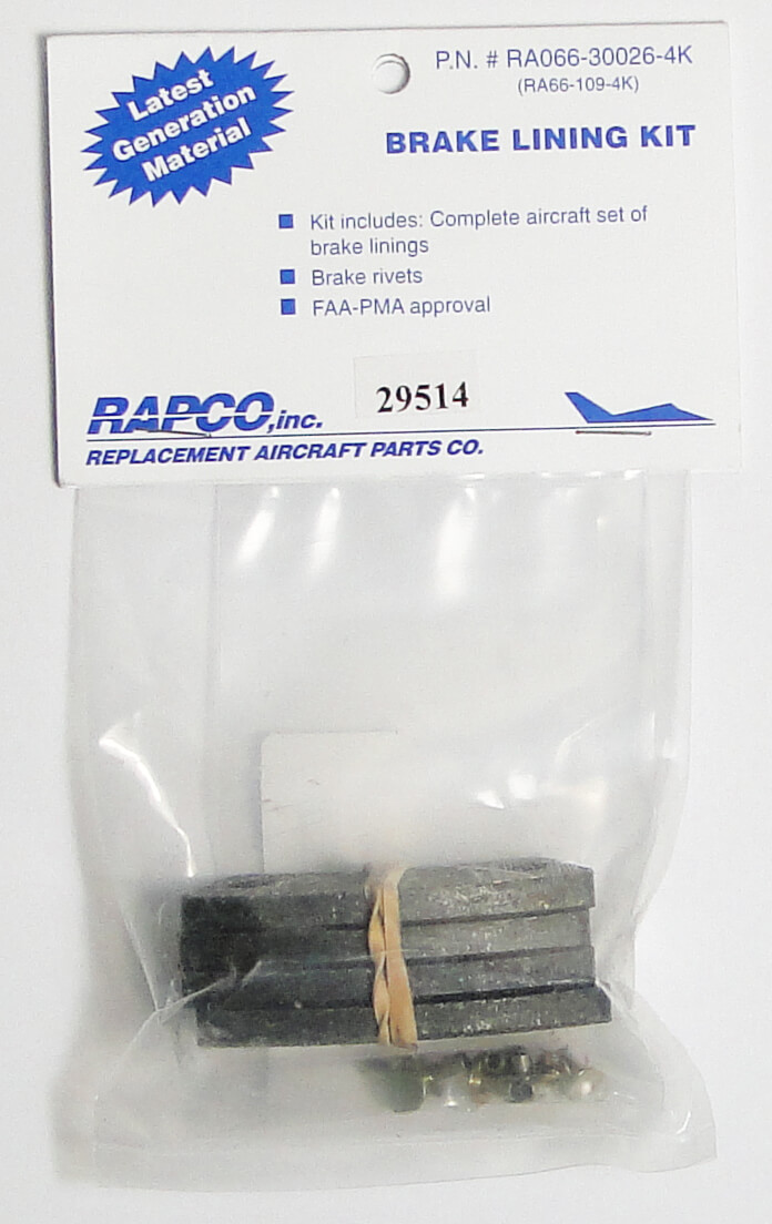 All Rapco Brake Lining kits come complete with correct number of brake linings and rivets needed for each aircraft.