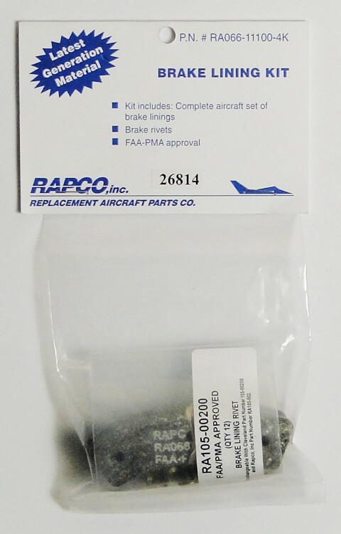 All Rapco Brake Lining kits come complete with correct number of brake linings and rivets needed for each aircraft.