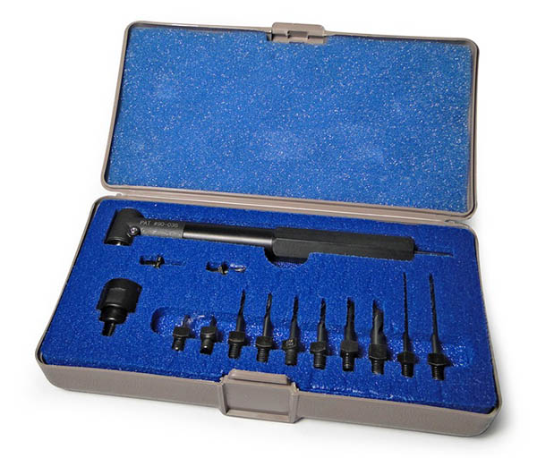 This angle drill kit includes a drill attachment with quality ball bearing construction for long life. Kit includes 12 threaded drills in assorted sizes and lengths, a mini 3-jaw chuck with 1/16" to 1/4" diameter capacity, and a molded storage case. Made in the U.S.A. Drill Sizes: 1 ea. #2140 #40 stubby 1 ea. #2130 #30 stubby 2 ea. #3140 #40 short 2 ea. #3130 #30 short 1 ea. #3127 #27 short 1 ea. #3121 #21 short 1 ea. #3112 #12 short 1 ea. #3114 #1/4" short 1 ea. #4140 #40 long 1 ea. #4130 #30 long 1 ea. #20379 Mini 3-jaw chuck |