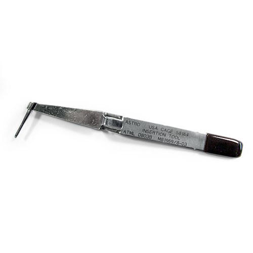 The ATML 0803B, mil spec M81969/8-03, is an insertion tweezer designed for size 22 pin and socket contacts installed in MIL-C-38999 Series I & II rear release circular connectors. |