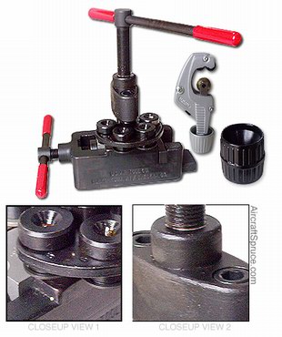 Kit includes: Double Lap Flaring Tool, Four Setting Gauges, Tubing Cutter, Inner-Outer Reamer, and a fitted carrying case. Double Lap Flare: 1/4", 5/16", 3/8" Single Lap Flare: 3/16", 1/2" Note: Accessory colors may vary. |