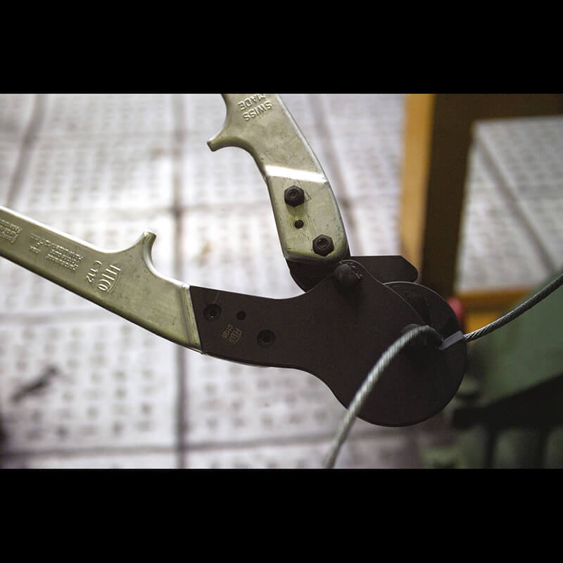 Two-hand steel wire and cable cutter. Cutting capacity of 5/8" / 16mm. Reliable: unbreakable hardened handles made of forged aluminium with a lifetime guarantee / blades and fastenings in high-quality hardened steel / parts subject to wear and tear can be replaced Efficient: clean, precise cut without crushing the cable thanks to the triangular cutting system / easy and durable cutting adjustment Ergonomic: lightweight handles / helpful lever effect / comfortable plastic coating |