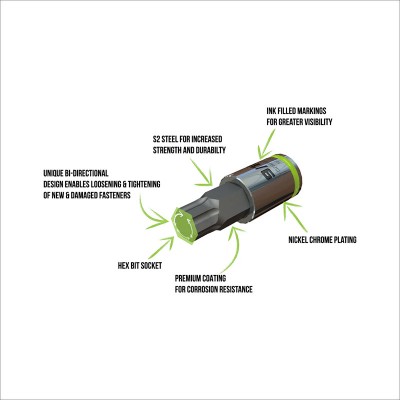 • Patented and unique bi-directional design enables loosening & tightening of new and damaged hex fasteners