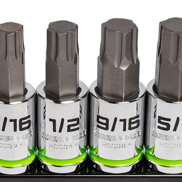 GRIPEDGE Rounding Prevention Technology (R.P.T.) Hex bit sockets are engineered to outperform traditional hex tools. R.P.T. prevents the rounding of good fasteners and can also remove severely damaged fasteners. Featuring a distinct, patented, bi-directional design, it offers up to 50% more preventative torque on good fasteners than traditional tools and delivers up to 400% more torque on damaged fasteners. Damaged fasteners can be reused temporarily if a suitable replacement isn't available. Each bit is precisely crafted from S2 steel for increased strength and durability and is coated to enhance corrosion resistance. Additionally, all sockets feature large, easy-to-read, roll-stamped, and ink-filled size markings, while nickel chrome plating offers extra protection against corrosion.