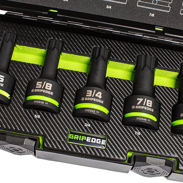 GRIPEDGE Tools 5-PC - Impact SAE RPT Hex Bit Socket - 3/4 Inch Drive. |
