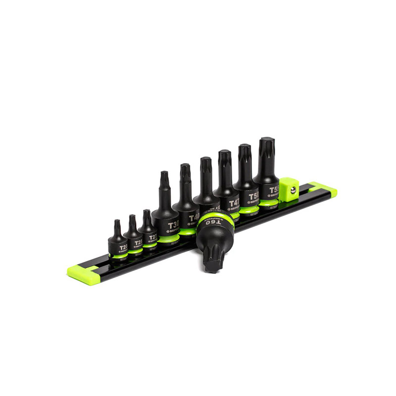 GRIPEDGE - “ITS ALL ABOUT THE GRIP” GRIPEDGE R.P.T. (Rounding Prevention Technology) Impact Star bit sockets are designed to replaced standard star tools. R.P.T. Technology provides up 50% more prevention torque on good fasteners vs standard tools, whilst applying up to 400% more torque on damaged fasteners vs standard tools. The unique, patented, & bi-directional geometry prevents the rounding of good fasteners whilst being able to remove extremely compromised fasteners. Compromised fasteners can be re-inserted in a pinch if a suitable replacement is not available. Each bit is precision machined from Cr-Mo steel for increased strength and durability as well as coated for increased corrosion resistance. All sockets have oversize, laser etched size markings for greater visibility, and manganese phosphate coating for corrosion resistance. |