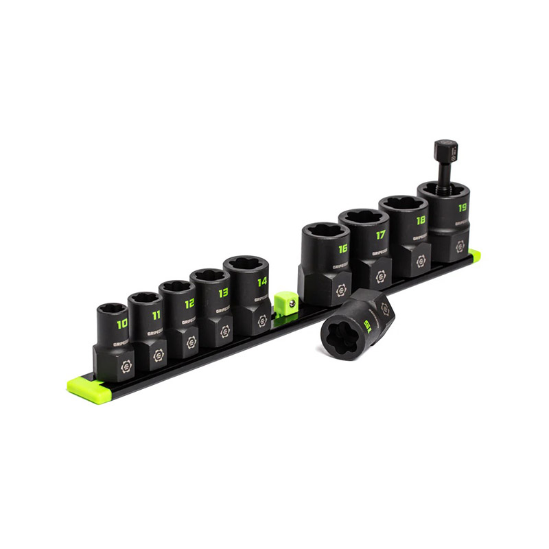 Unique Bi-directional design for left and right threaded bolts as well as the ability to work the stripped fastener back and forth to break it free. Non-tapered internal geometry provides grip from top to bottom. Patented G-FORS pusher rod provides quick and easy removal of extracted objects. Premium CR-MO steel construction for increased strength and durability. Large size marking for greater visibility. Premium coating for increased corrosion resistance. |