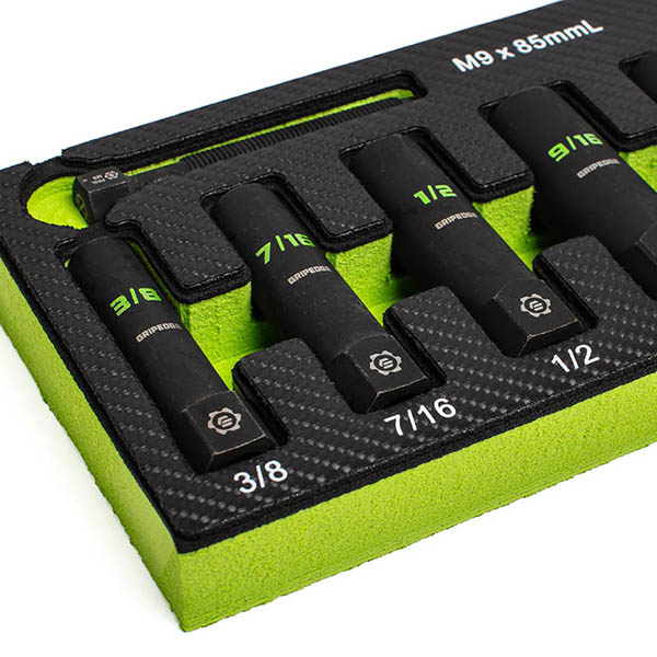 Unique Bi-directional design for left and right threaded bolts as well as the ability to work the stripped fastener back and forth to break it free. Non-tapered internal geometry provides grip from top to bottom. Patented G-FORS pusher rod provides quick and easy removal of extracted objects. Premium CR-MO steel construction for increased strength and durability. Laser marking for greater size visibility. Premium coating for increased corrosion resistance. |