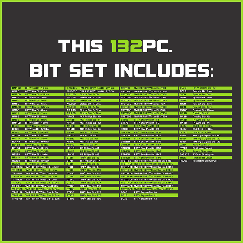 | GRIPEDGE - ITS ALL ABOUT THE GRIP - Introducing GRIPEDGE R.P.T. (Rounding Prevention Technology) Multi-Bit Driver Set, engineered to supersede conventional driving tools. These advanced R.P.T. bits provide up to 50% greater torque delivery on intact fasteners compared to standard instruments and exert up to 400% more torque on compromised fasteners. With a unique, patented design that features bi-directional geometry, our technology is tailored to prevent the rounding of functional fasteners while effectively engaging with severely damaged ones. Should an appropriate replacement be unavailable, these damaged fasteners can still be re-inserted temporarily. Each bit is precision-crafted from robust S2 steel, enhancing both strength and longevity, and comes with a protective coating for superior corrosion resistance. Furthermore, all bits are marked with laser-etched sizing for easy identification and feature a zinc phosphate finish for added durability against corrosion. |