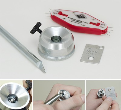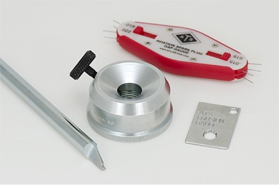 This spark plug gapper tool and the gap gauges make it easy to check and set the gap correcty for aircraft spark plugs.