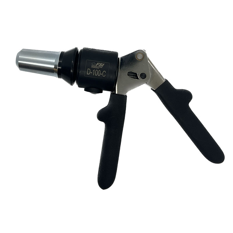 The D100-RN hand operated hydraulic tool is ideally suited to the needs of kit builders, commercial airlines, aerospace vehicle manufacturers, military aviation maintenance organizations, general aviation fixed based operators, and private aircraft fleets. The tool provides up to 3,750 lbs of pulling force over a .625" stroke which permits the installation of all Cherry Commercial Blind Rivets or any other Pop type rivets through 1/4" diameter as well as all CherryMax rivets through 3/16" diameter. Will not pull Cherry Lock rivets. The D100-RN quickly converts to a threaded blind nut setter to allow efficient installation of Rivet nuts or similar blind nuts. |