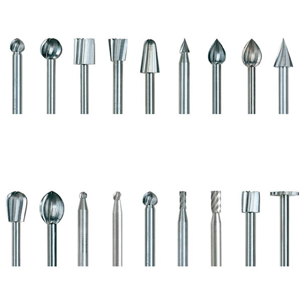 High Speed Cutters can be used for shaping, hollowing, groving, slotting, making tapered holes in soft metals, plastics and woods. Number 198 and 199 cutters can be used to make small slits.