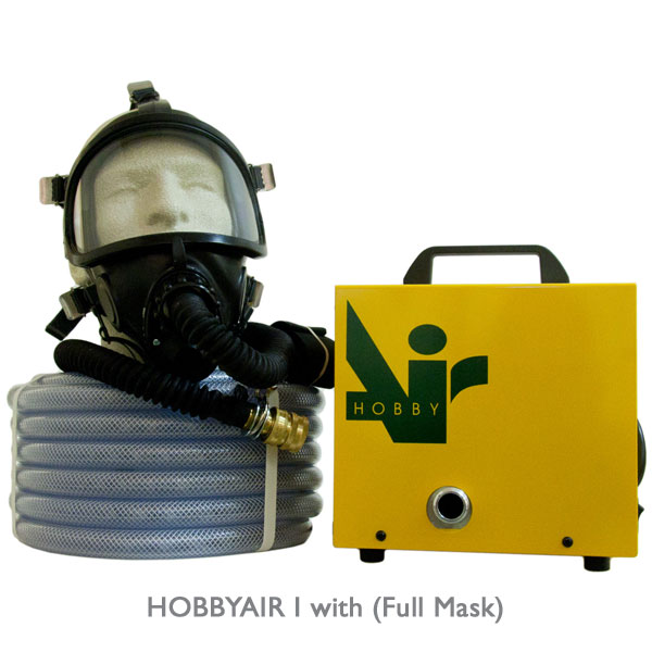 The Hobbyair 1 is a high quality unit made in the US. The half mask is comfortable and the attached rubber hose is a good length, attaching to the clip connect on the belt. The turbine air supply has plenty of volume through the 40 hose. The problem with the product is the 40 clear plastic reinforced supply hose. The plastic material is hard as a rock and doesnt flex or bend sufficiently as you move about. It also tends to coil up on itself and not lay flat. The hose is excessively rated at 200psi, and does not need to be reinforced either. Very frustrating went moving about. Im looking at purchasing the Citation supply hose but I need to confirm it is more flexible. Disappointing hose, otherwise a good product.
