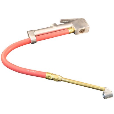 Milton Original Dual Head Chuck Tire Inflator Gauge - 15" Hose Milton Industries specializes in tire inflator gauges and this original S-506 dual chuck inflator gauge was the first gauge of its kind ever built in the industry. Gauge and valve cartridges are both replaceable. This essential pneumatic tool is ideal for any vehicle trunk, home garage, or automotive shop. Dual head chuck inflator gauge is made of heavy duty construction which provides for long life, even under extreme use and conditions. Equipped with magnifying lens for full view of scale. 1/4" NPT air inlet. |