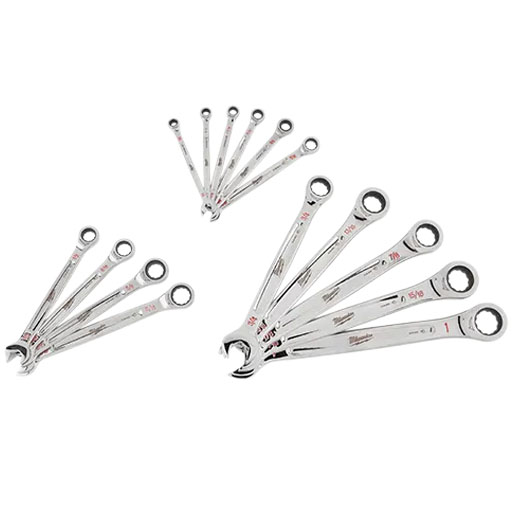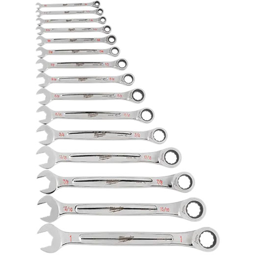MAX BITE™ Open-End Grip improves the ratchet wrench's grip on nuts and bolts, offering 25% more torque than smooth-faced wrenches. Each combination wrench features a comfortable I-Beam handle design for improved ergonomics. Our ratcheting combination wrench set features ink-filled size labels for easy size identification, as well as quick distinction between SAE and metric sets. The 15 piece SAE ratcheting combination wrench set comes in a tray designed for steel storage drawers, allowing for efficient storage with no wasted space. We stand behind our products, offering a Lifetime Guarantee on all of our combination ratchet wrench sets. |